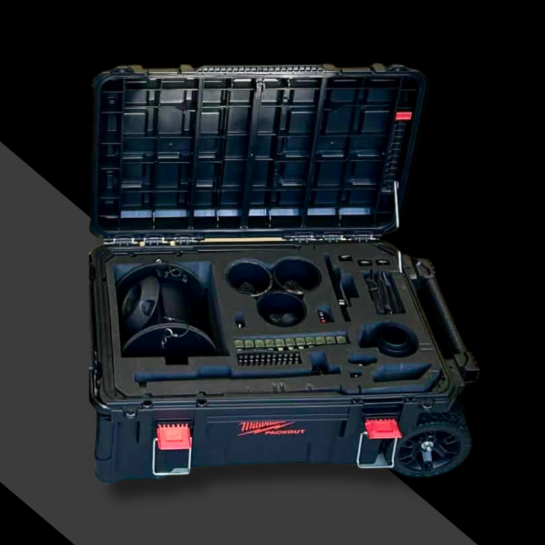 Kunden behövde en lösning som gör det enkelt att transportera ett komplett system med alla delar samlade. Därför tog vi tillsammans med OTS AB fram skräddarsydda väskor med formpressade insatser och utskurna fack.